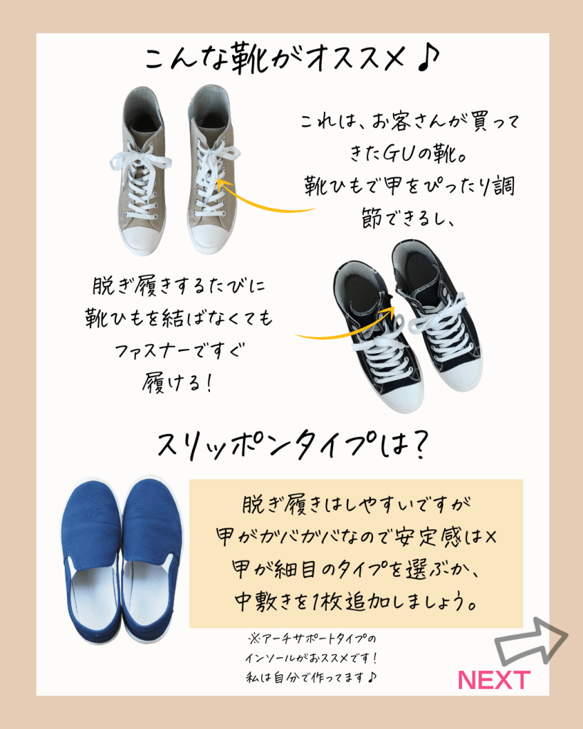 皆さんに直接お作りすることはできなくても、靴選び一つでも本当に姿勢が整い、美しく変化できますよ!