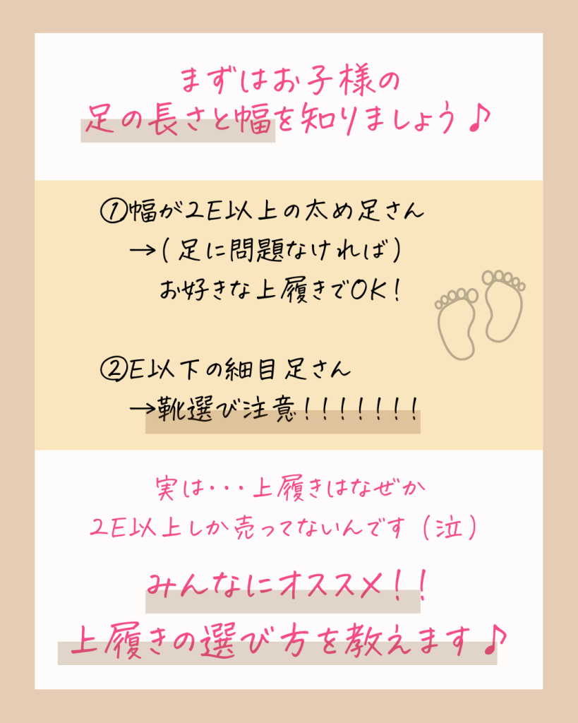 ムーンスターゲンキキッズさんにお聞きすると、こちらの上履きは幅が1Eのものと2Eのものの2種類あるそうです。