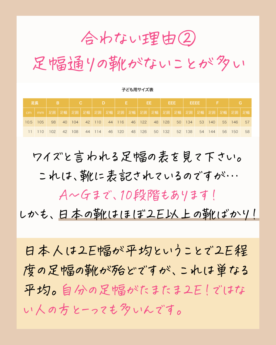 合わない理由②:自分の足幅通りの靴がないことが多い
